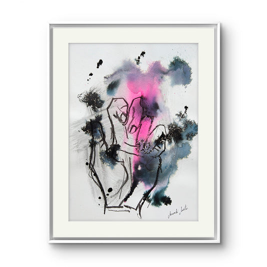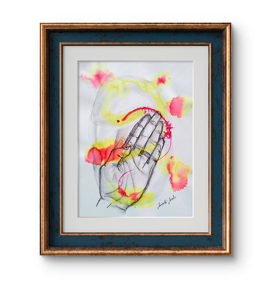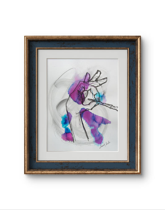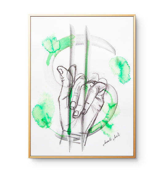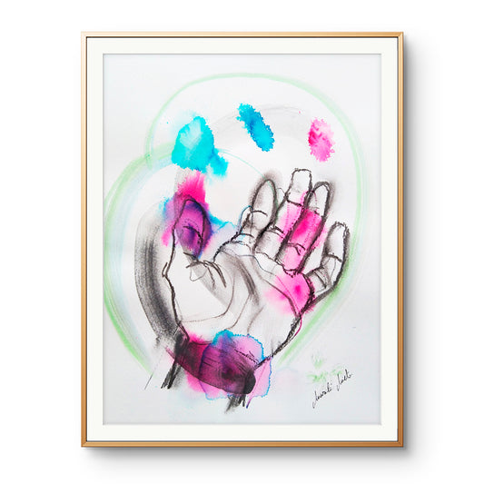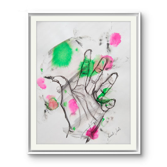 Manos Expresivas es una serie creada a través de un proceso artístico único: manchas de acuarela, dibujo intuitivo con carboncillo duro (sin mirar el papel), y técnicas que permiten que la acuarela húmeda rasgue el papel, dejando marcas irreversibles. Este proceso crea una huella única que no se puede borrar. Después, cada mano fue redibujada con carboncillo blando, observando el modelo, y en algunos casos exagerando ciertos rasgos para darles mayor expresividad al gesto.